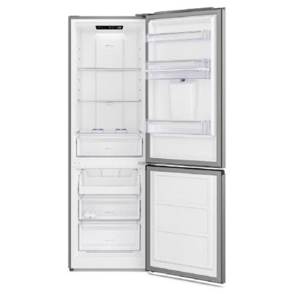 • Color silver inox • 4 estrellas • Skin sellado • Control de temperatura mecánico • Patas ajustables • Sistema no Frost • Dispensador de agua • Puertas reversibles