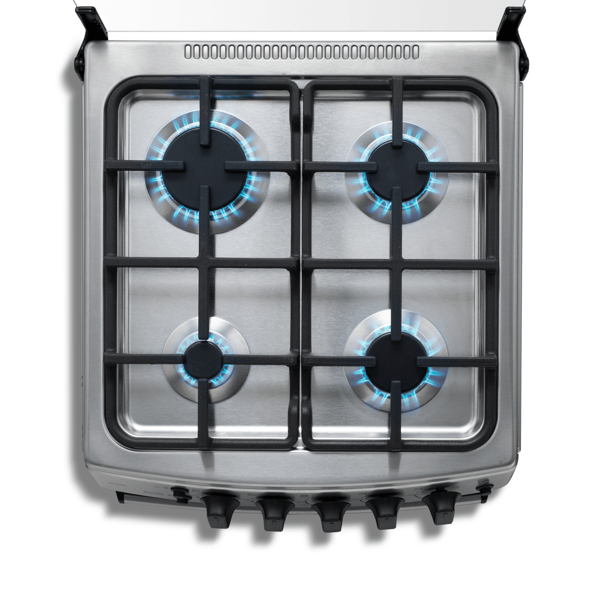 Cocina Bilbao combina eficiencia, diseño y funcionalidad en un formato compacto de 20 pulgadas. Ideal para espacios reducidos, cuenta con tapa de vidrio templado, tablero de acero inoxidable y quemadores sellados, que facilitan la limpieza y garantizan mayor seguridad al cocinar. Las parrillas fundidas brindan estabilidad para todo tipo de ollas.